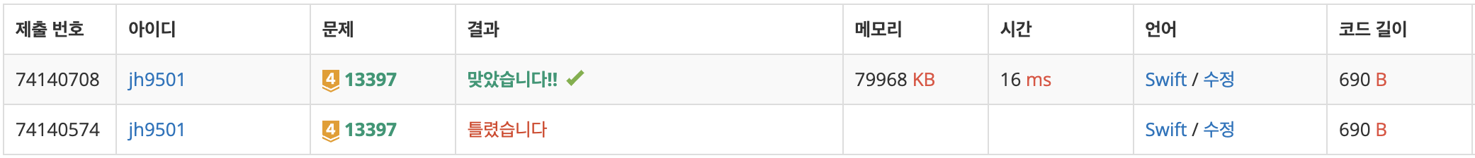 질문 게시판에 올라온 반례를 통해 알 수 있었고, 해당 부분을 수정하여 정답을 받았다.